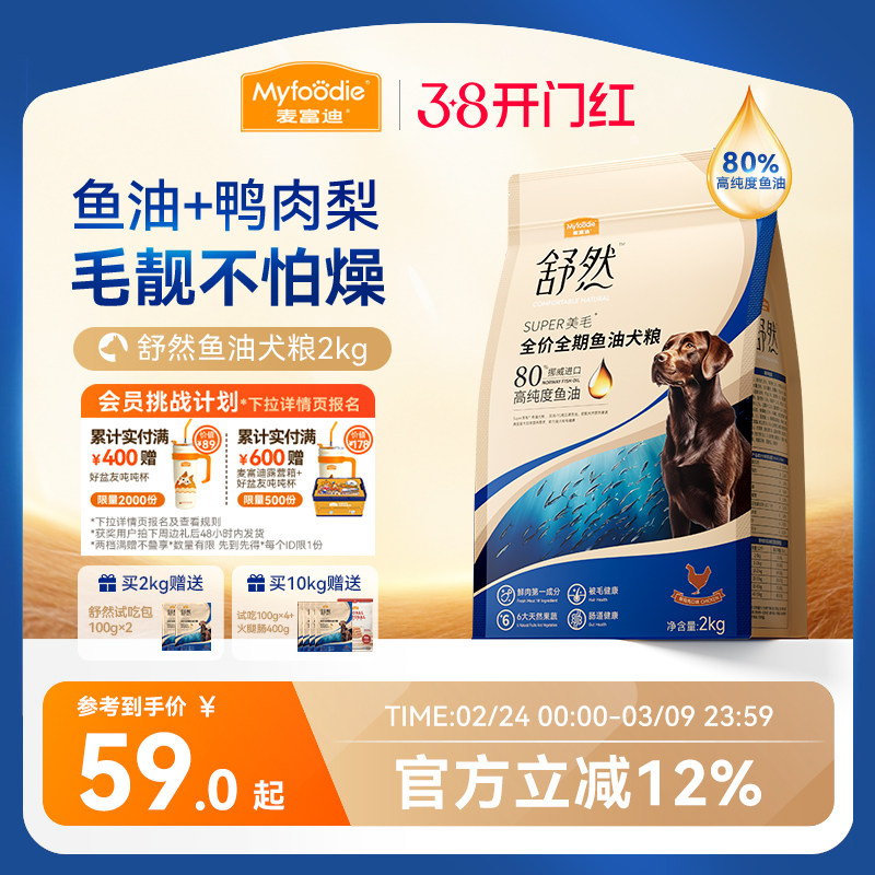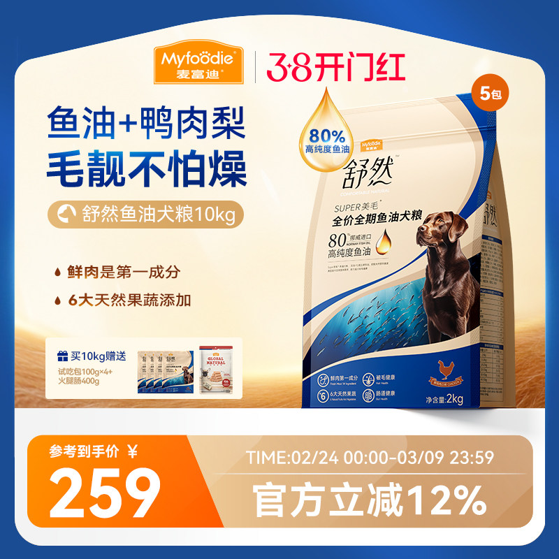 麦富迪舒然鱼油美毛狗粮鸭肉梨鸡肉小型成犬幼犬泰迪金毛通用犬粮