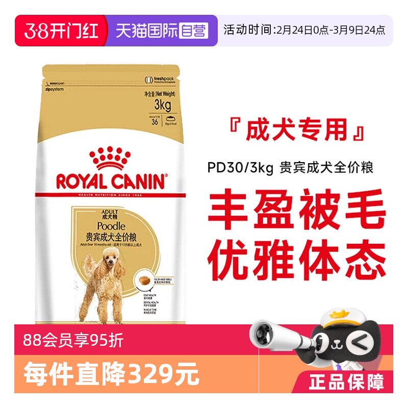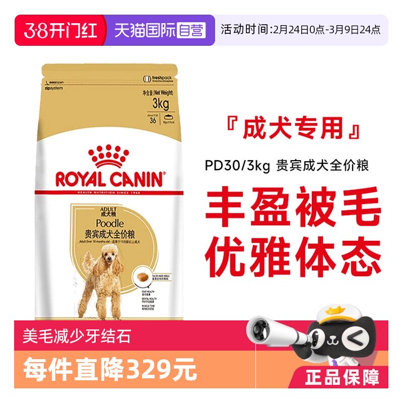 【自营】皇家狗粮贵宾成犬全价粮PD30/3KG护肤美毛泰迪贵宾专用粮
