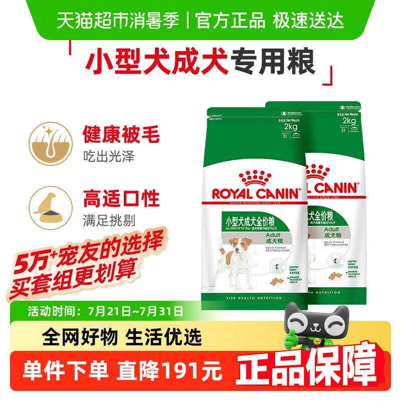 皇家狗食PR27小型犬成犬狗粮2KG*2比熊博美泰迪美毛狗粮官方正品