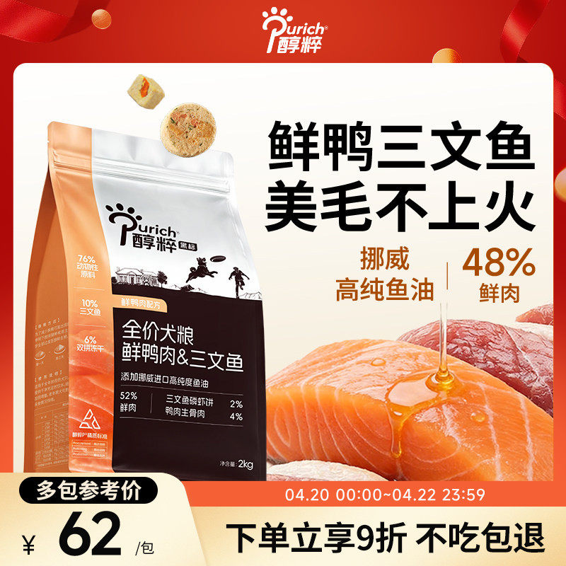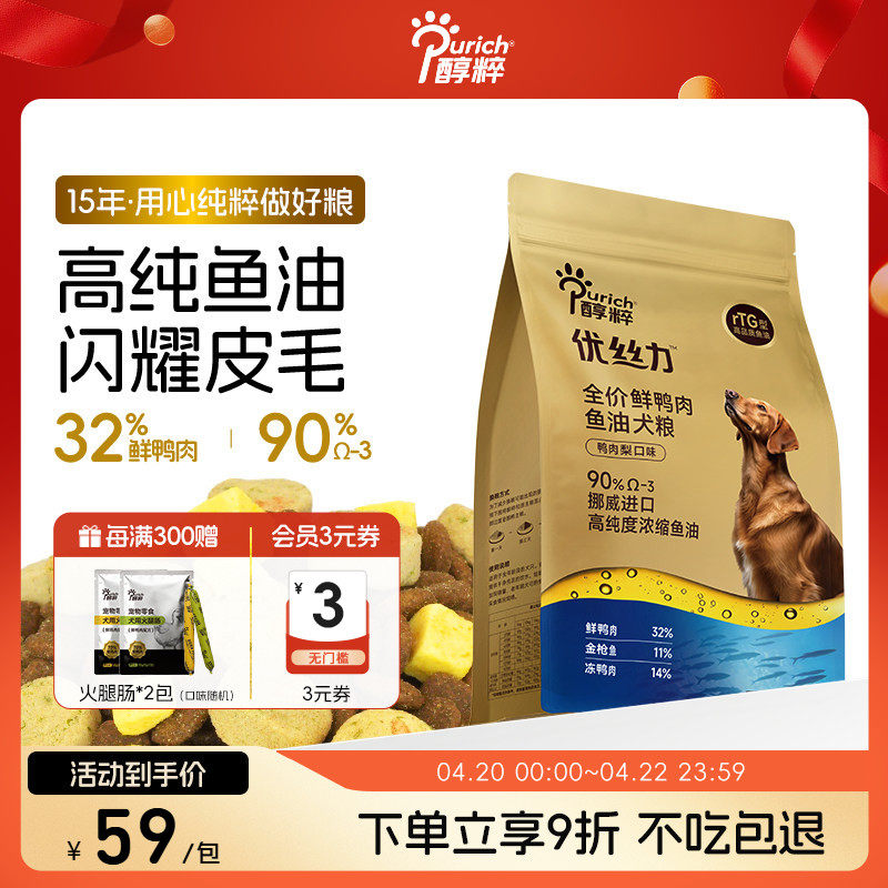 醇粹优丝力鱼油狗粮鸭肉梨全价成幼犬通用型泰迪比熊金毛美毛全期