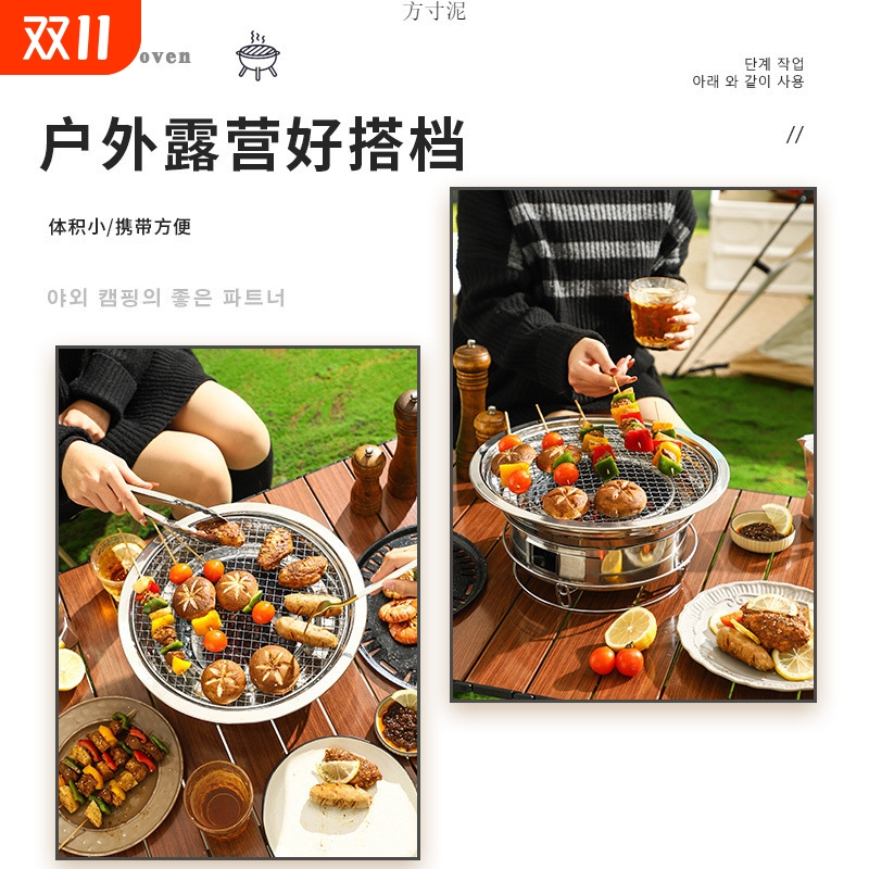韩式烤肉炉家用碳烤炉商用烧烤炉圆形烤盘烤肉锅炭火火盆围炉煮茶