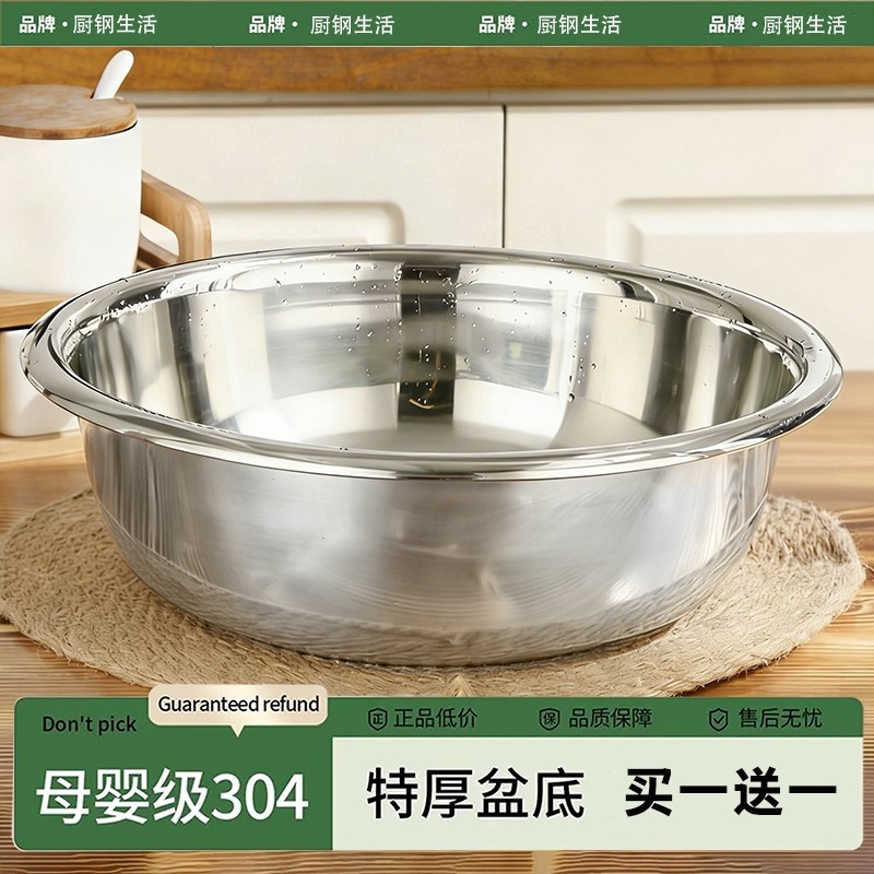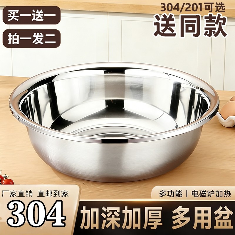 加厚款304不锈钢盆洗菜盆汤盆和面盆家用厨房盆子大号洗脸洗衣盆