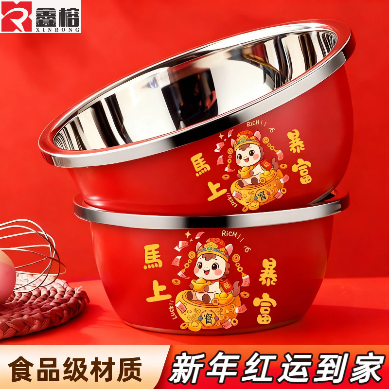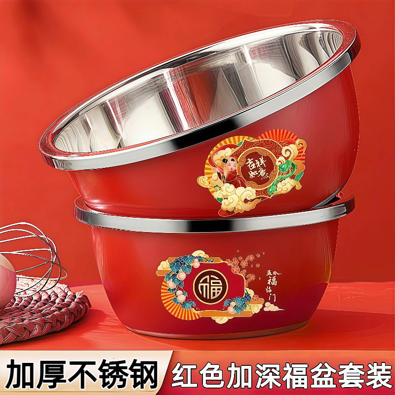 【三件套】不锈钢盆洗菜盆子红盆套装洗脸盆陪嫁婚庆和面盆料理盆