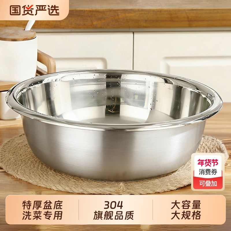 不锈钢盆洗菜盆家用厨房304食品级面盆脸盆大盆加厚商用盆子特大