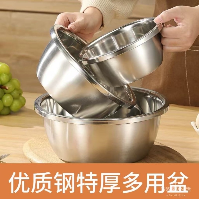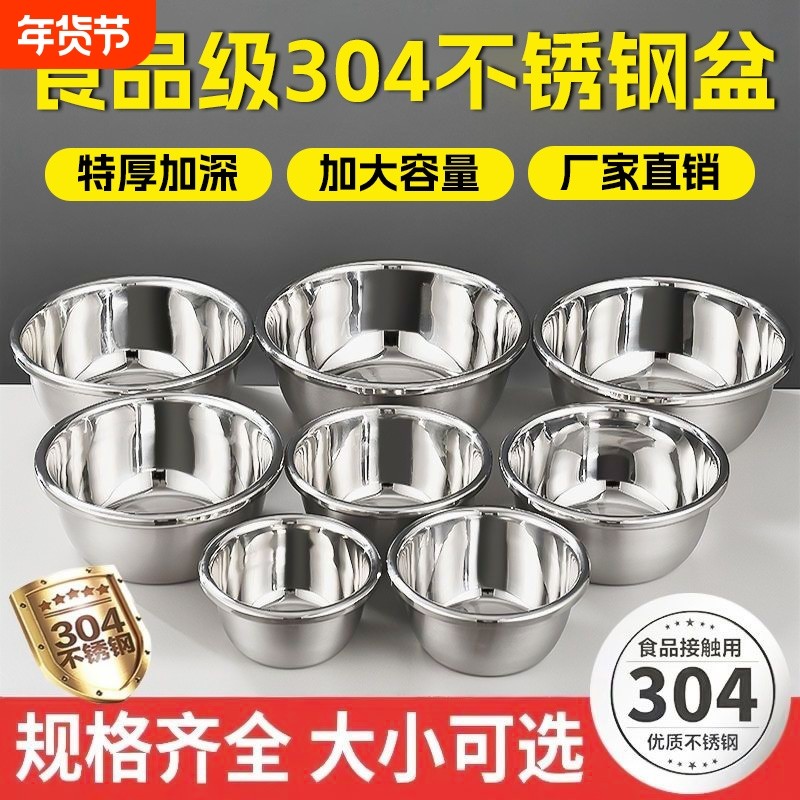 特厚304不锈钢盆食品级家用打蛋和面盆厨房烘焙洗菜盆汤盆铁盆子