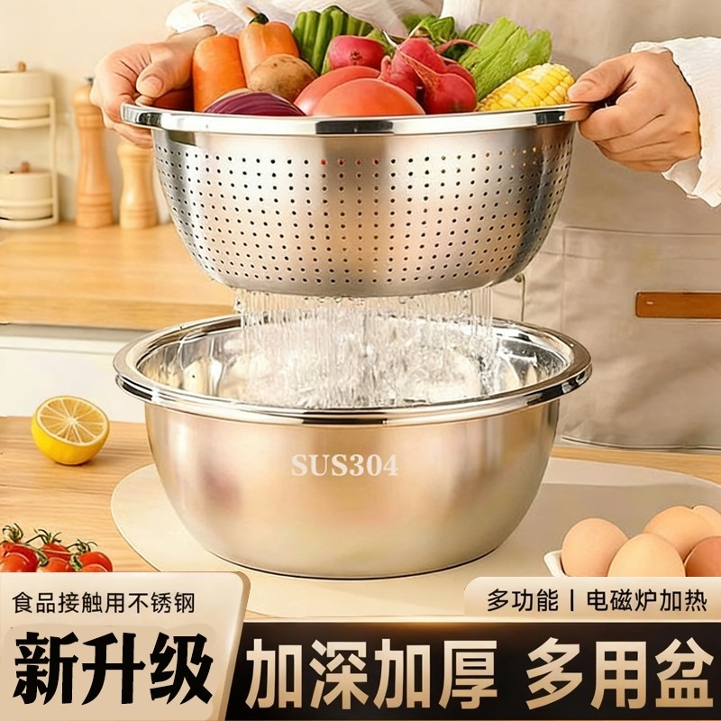 加大加厚不锈钢盆和面盆不锈钢沥水篮洗菜盆打蛋盆厨房家用漏盆子