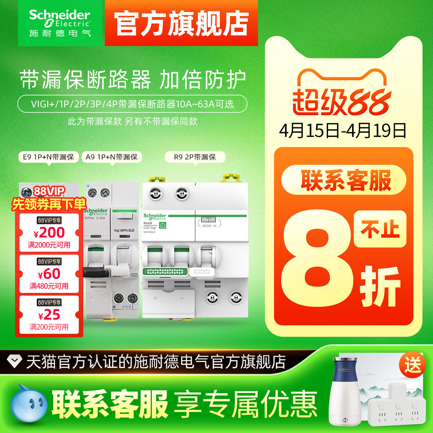 施耐德空气开关带漏电保护器2P空开开关1P断路器3P家用63A电闸