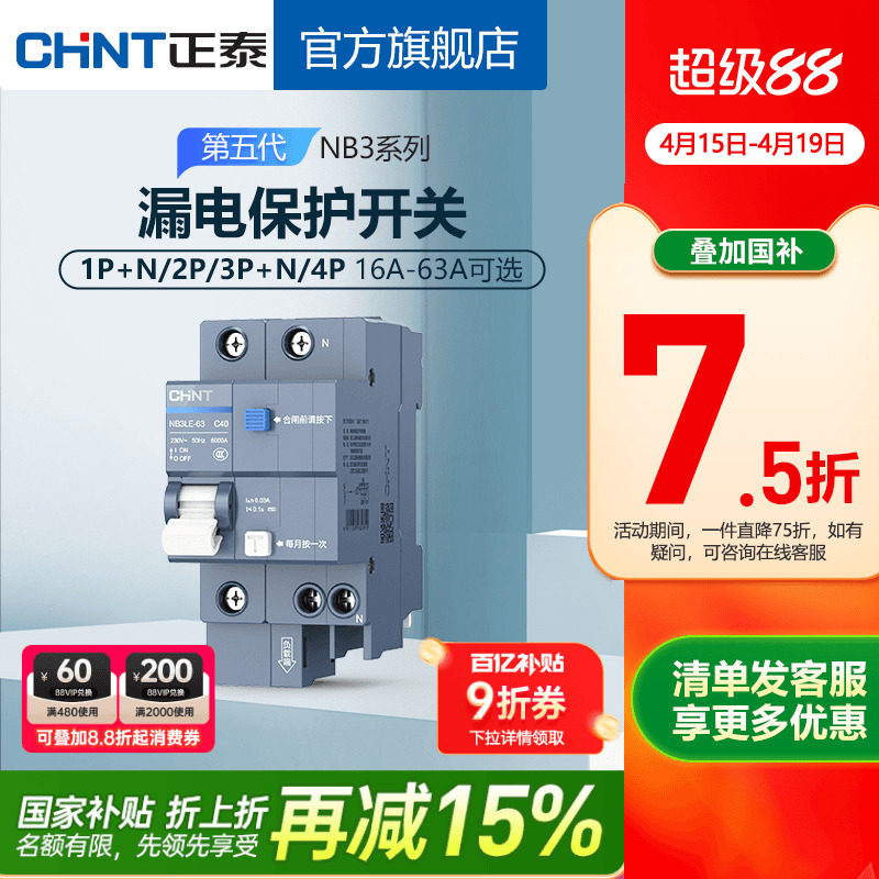 正泰空气开关家用NB3漏保断路器63A总空开空调带漏电保护32A