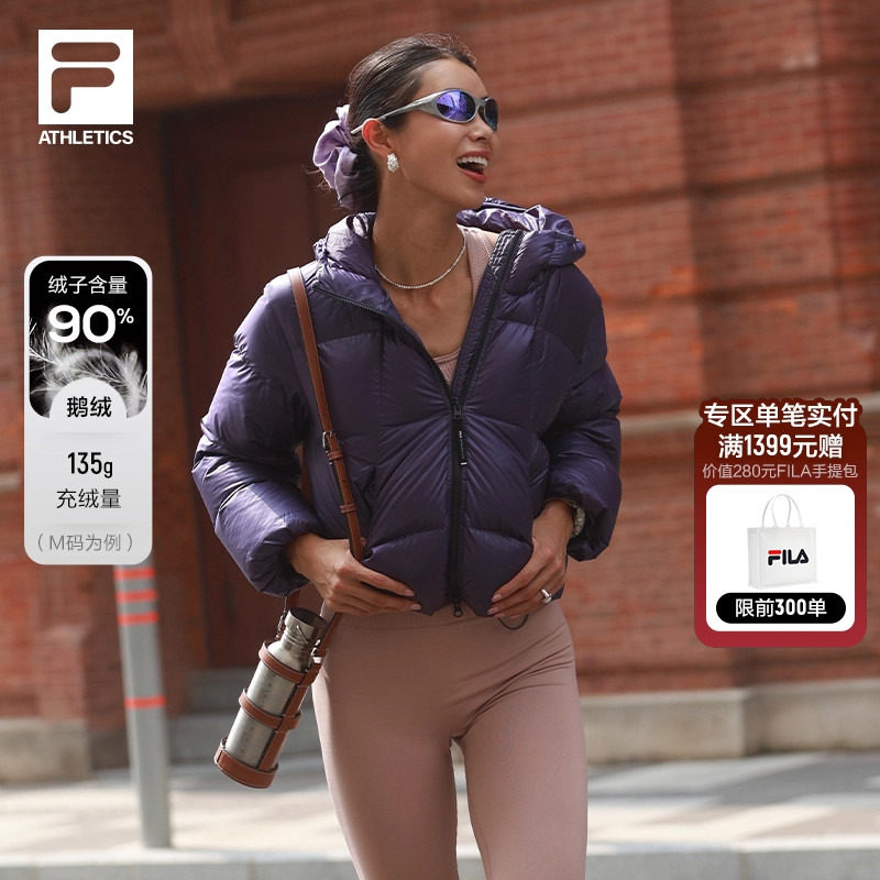 鹅绒FILA飞羽斐乐女士羽绒服2025冬季新款健身运动宽松保暖外套