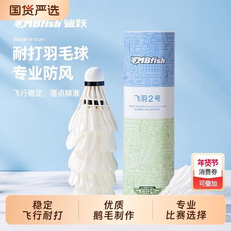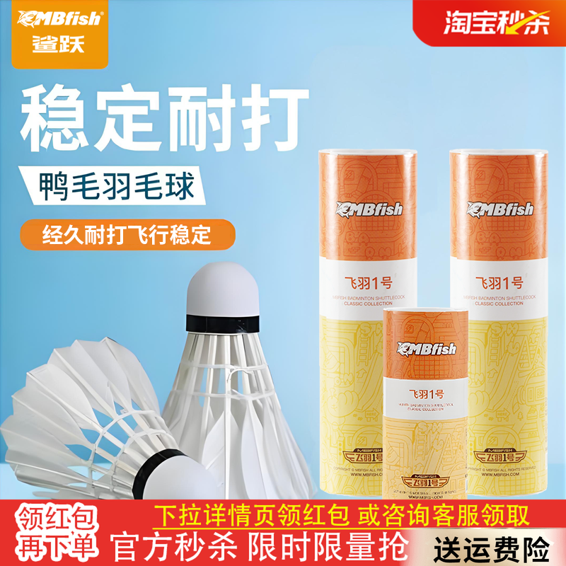 鲨跃Mbfish羽毛球正品飞羽系列鸭毛超轻训练室内外不易打坏组合装