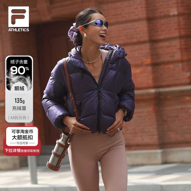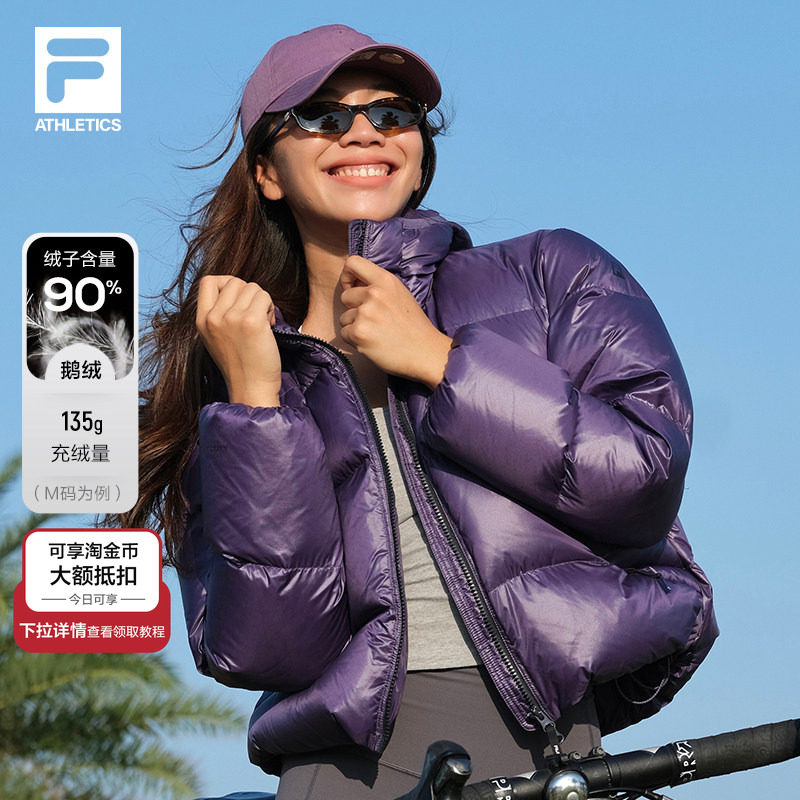 鹅绒FILA飞羽斐乐女士轻量羽绒服2025冬新款宽松保暖运动外套短款