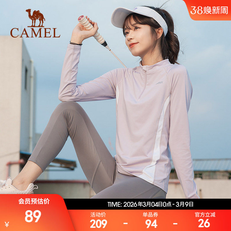 骆驼速干跑步上衣女 短袖防晒立领健身瑜伽显瘦羽毛球网球运动T恤