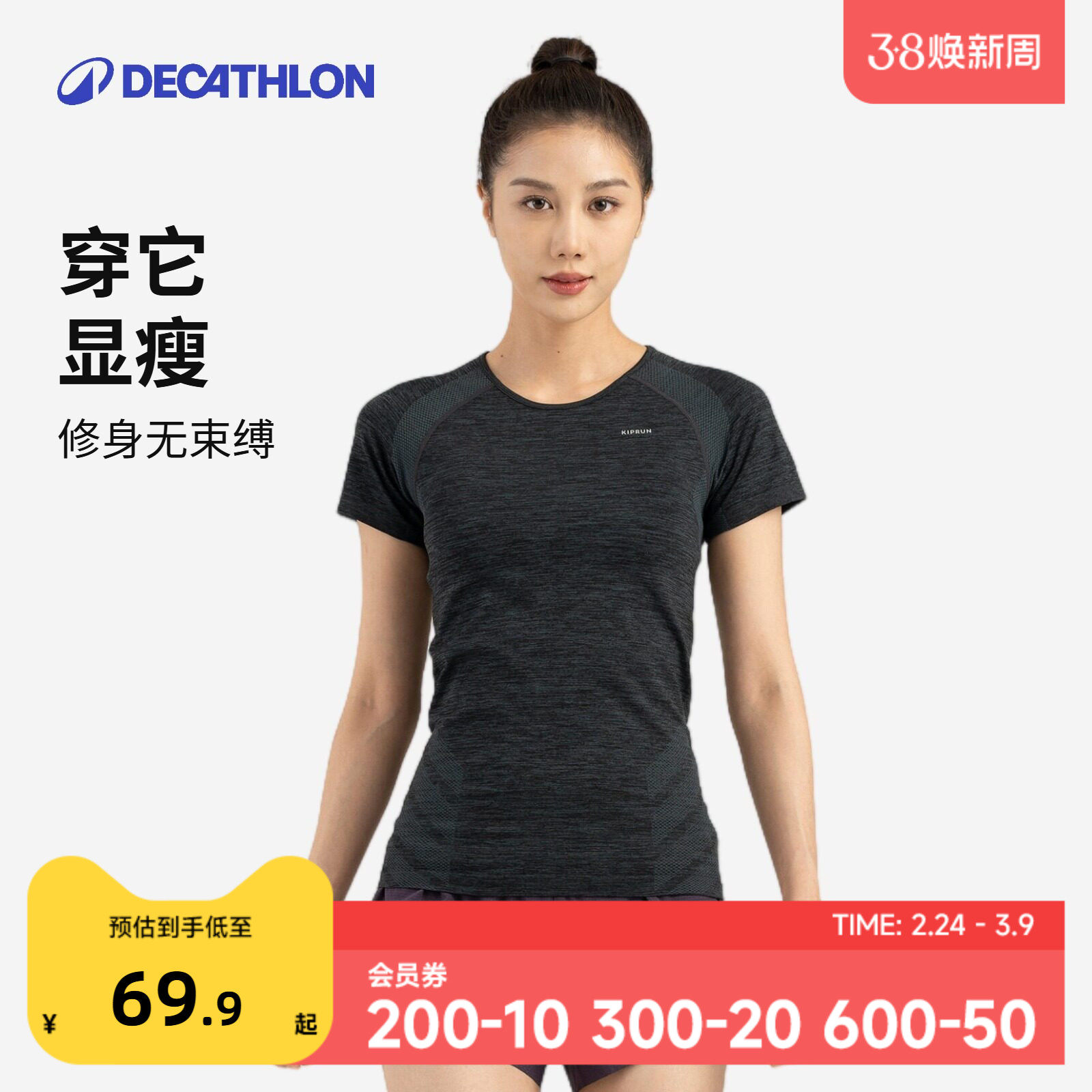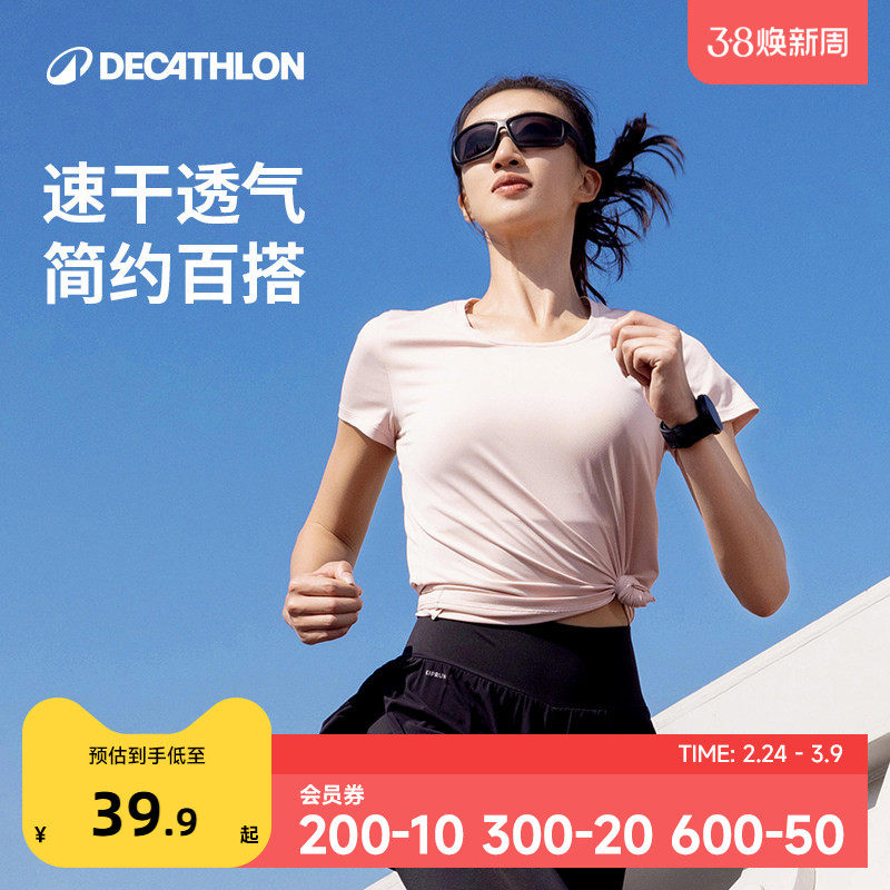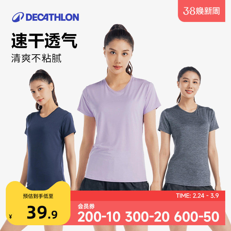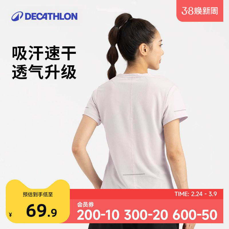 迪卡侬运动上衣女春夏速干衣短袖跑步T恤羽毛球服健身服短袖SAL2