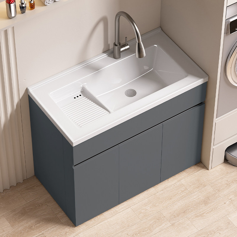 太空铝洗衣柜带搓板阳台落地式一体台盆陶瓷洗衣池带搓衣板洗手盆