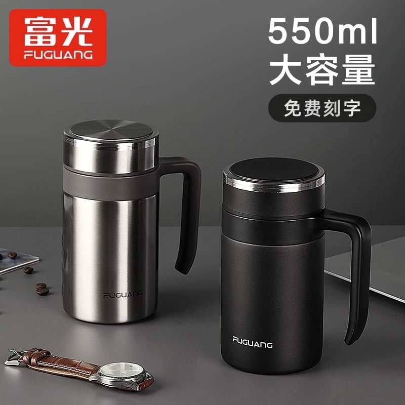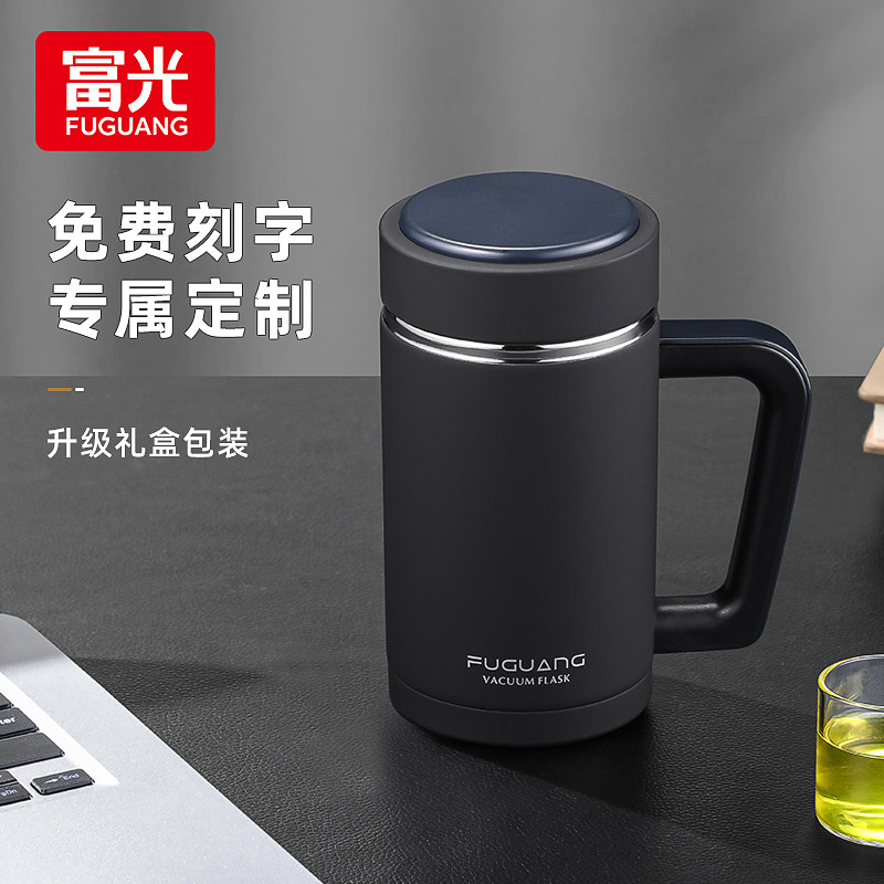 富光不锈钢保温杯男大容量家用办公室商务带把手柄过滤泡茶水杯子