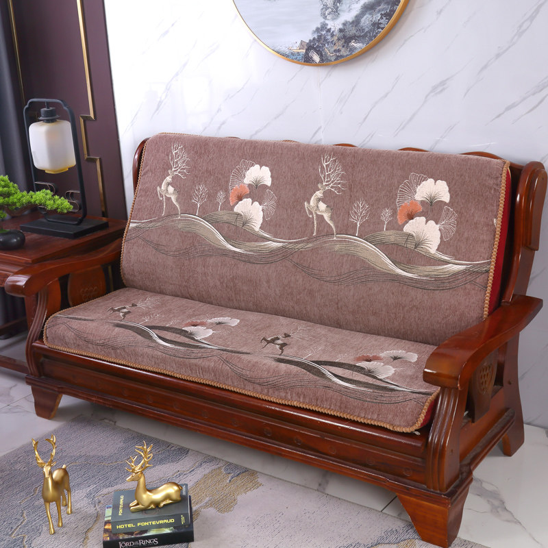 红实木沙发垫坐垫老式木质三人位座垫木头毛绒加厚垫子可拆洗防滑