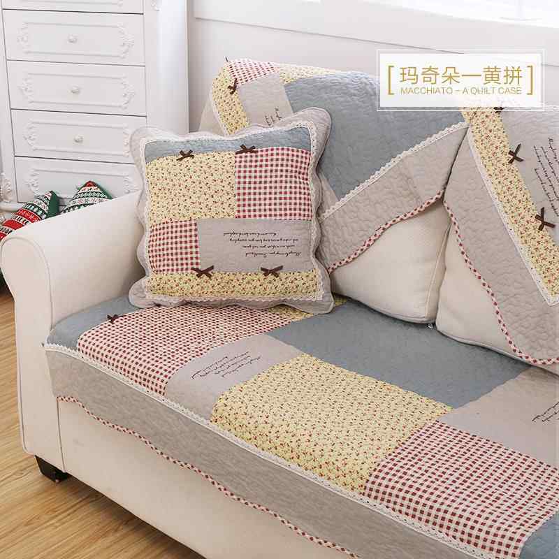 全棉 四季通用纯棉田园沙发垫子 布艺防滑坐垫三人沙发套罩靠背巾
