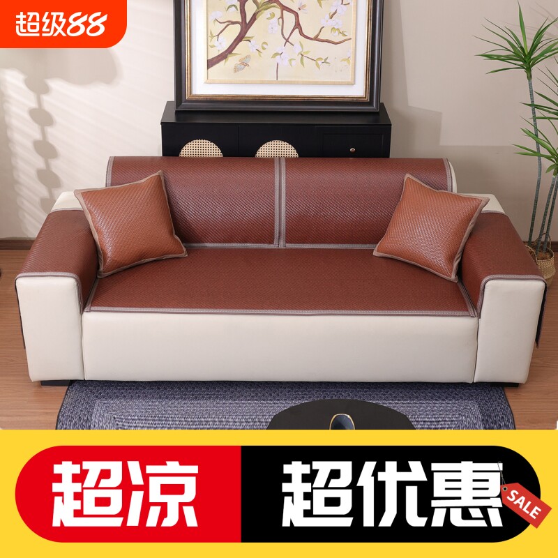 夏季实木沙发垫麻将凉席竹垫子防滑三人加厚夏天红木藤席海绵坐垫