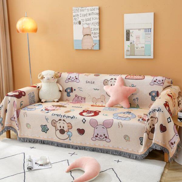 沙发垫子卡通图案可爱四季通用防滑单三人位沙发套罩维尼盖布线毯