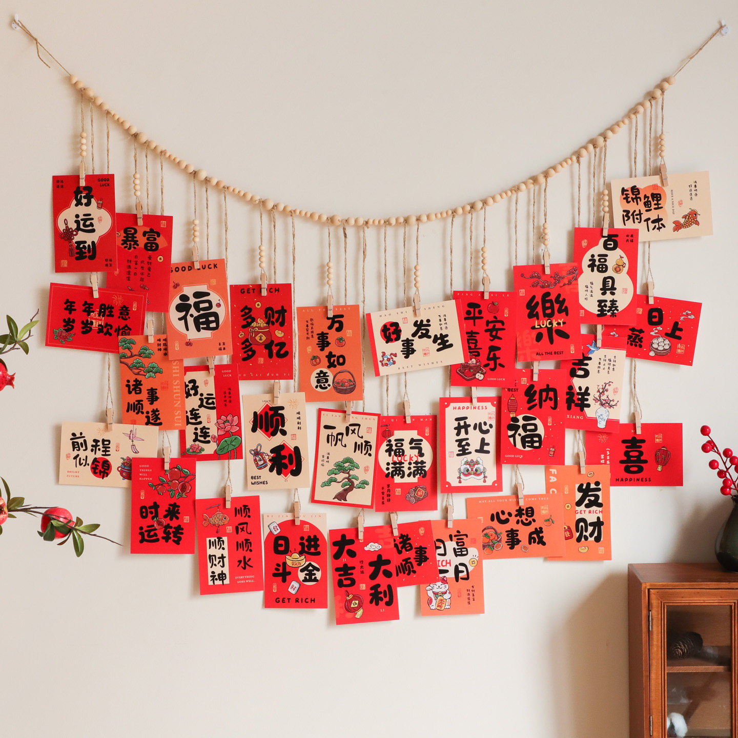 新年祝福语卡片墙贴挂件装饰好运壁饰创意可爱喜庆氛围感客厅布置
