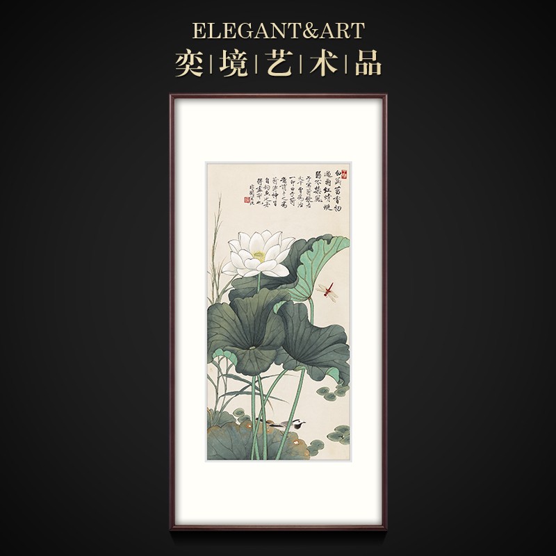 奕境 新中式装饰画工笔画荷花国画竖版玄关壁画过道走廊挂画 好荷