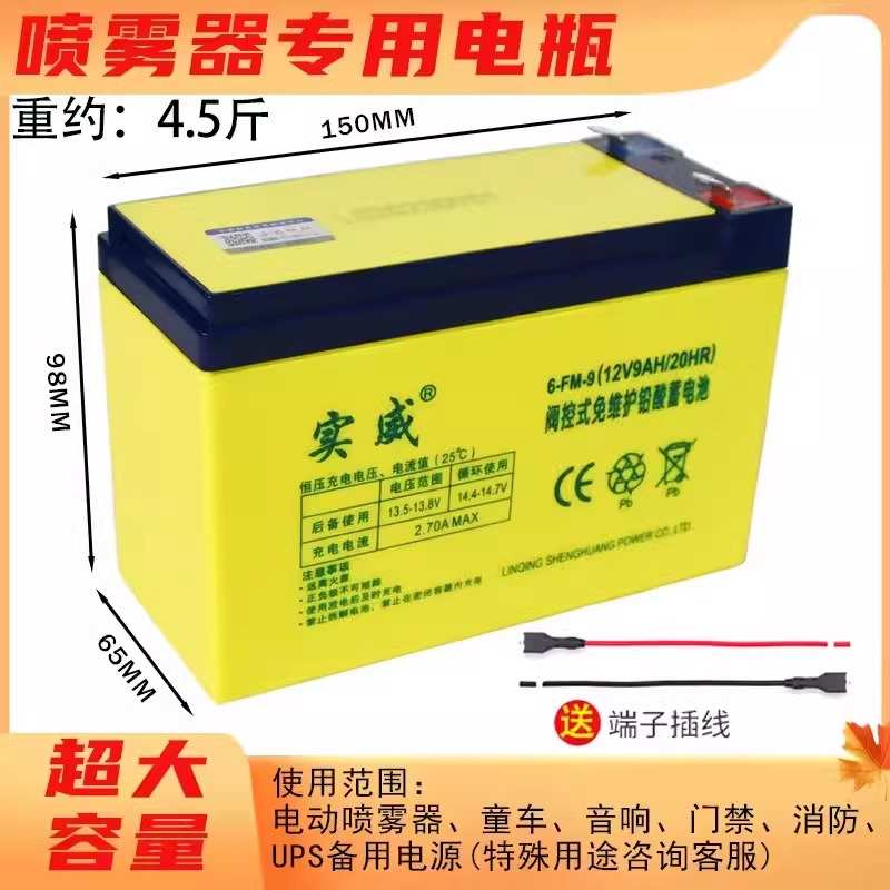 电动喷雾器12v8ah蓄电池电瓶喷农药12伏音响玩具童车12V9铅酸电池