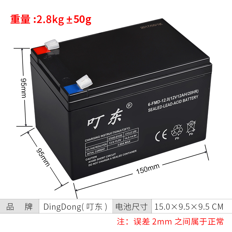农用园林打药电动喷雾器12V8AH蓄电池 12安电瓶P 17A汽油机电启动