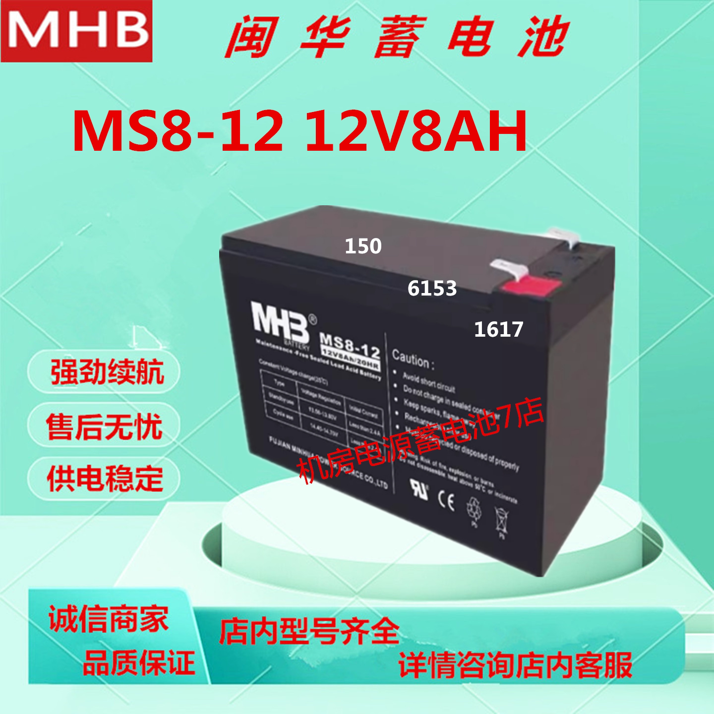 MHB闽华蓄电池MS8-12 12V8AH应急电源UPS电源直流屏机房电梯铅酸