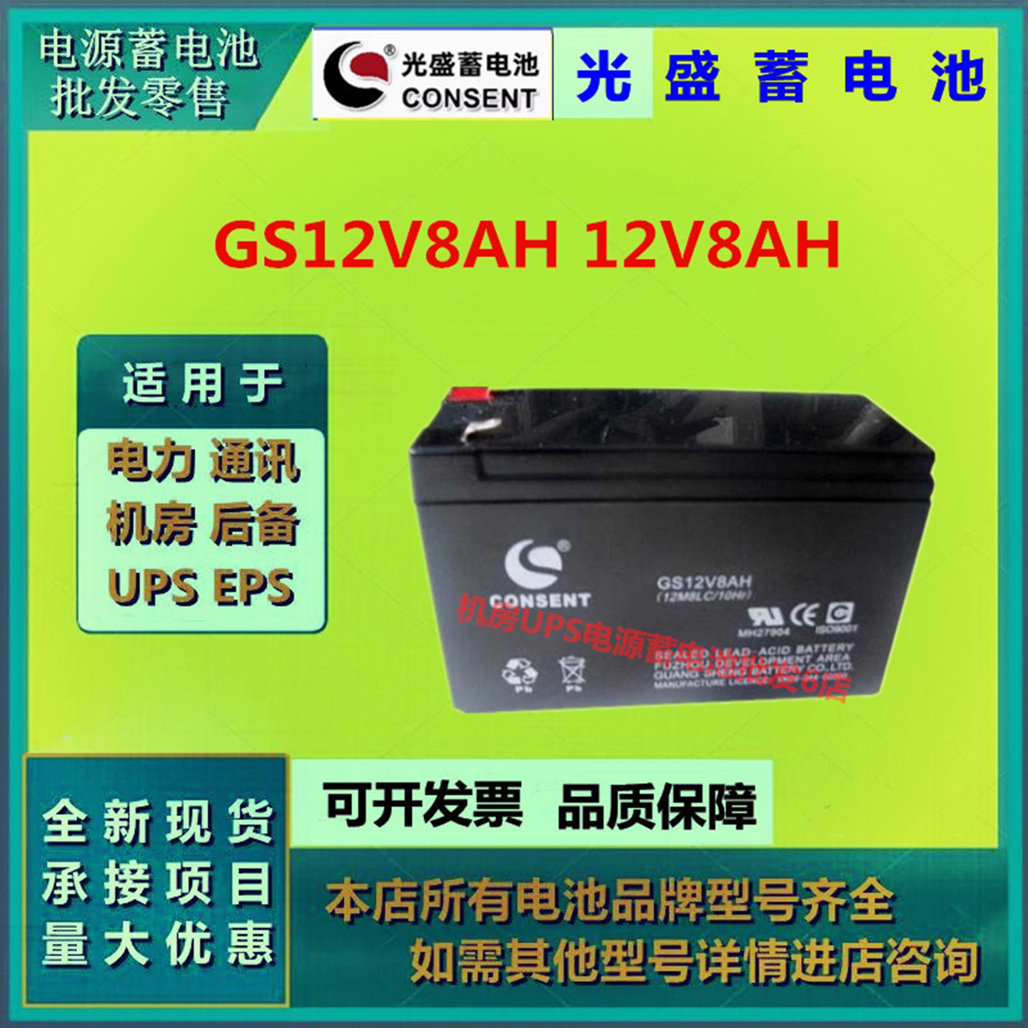 光盛蓄电池GS12V8AH 12V8AH免维护直流屏阀控式UPS电源通信基站