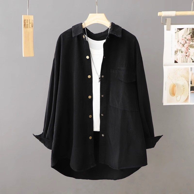- 长袖衬衫女宽松中长款 学生