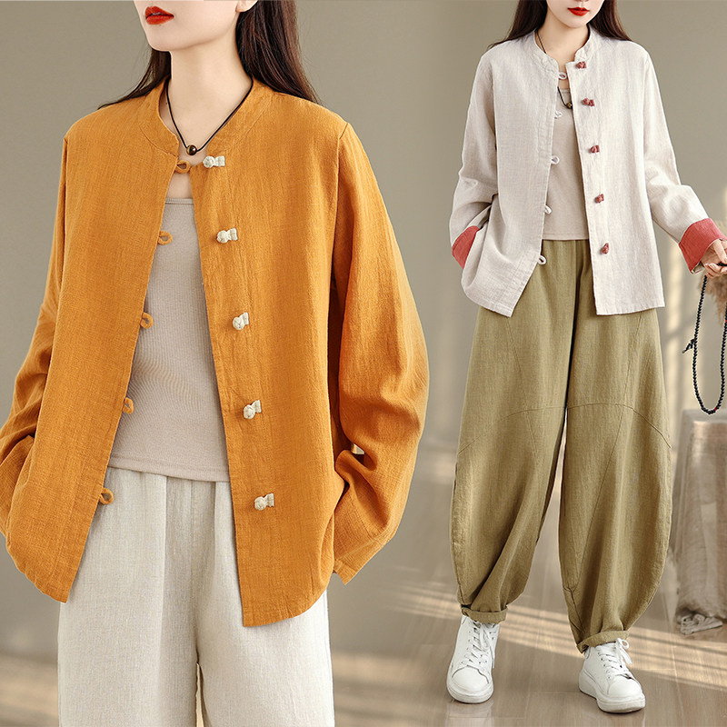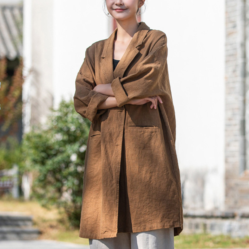 - 亚麻衬衣女