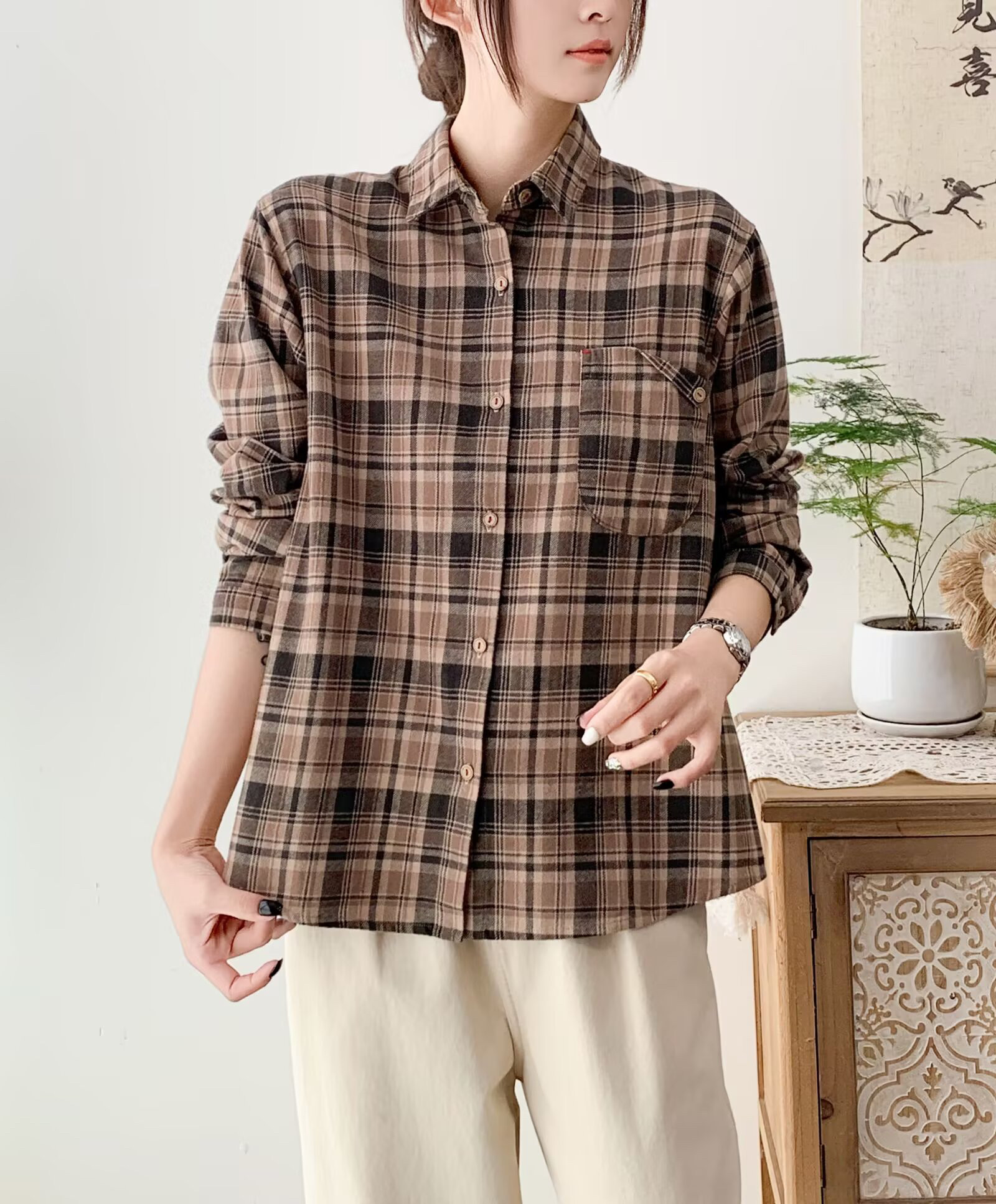 - 格子衬衫女 宽松