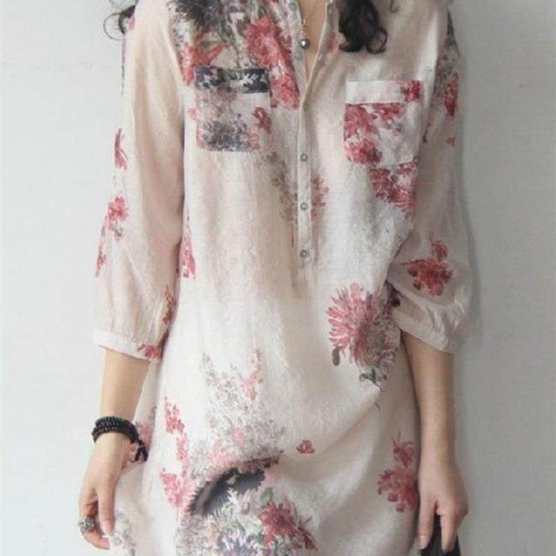 - 棉麻衬衫 女 夏 长袖