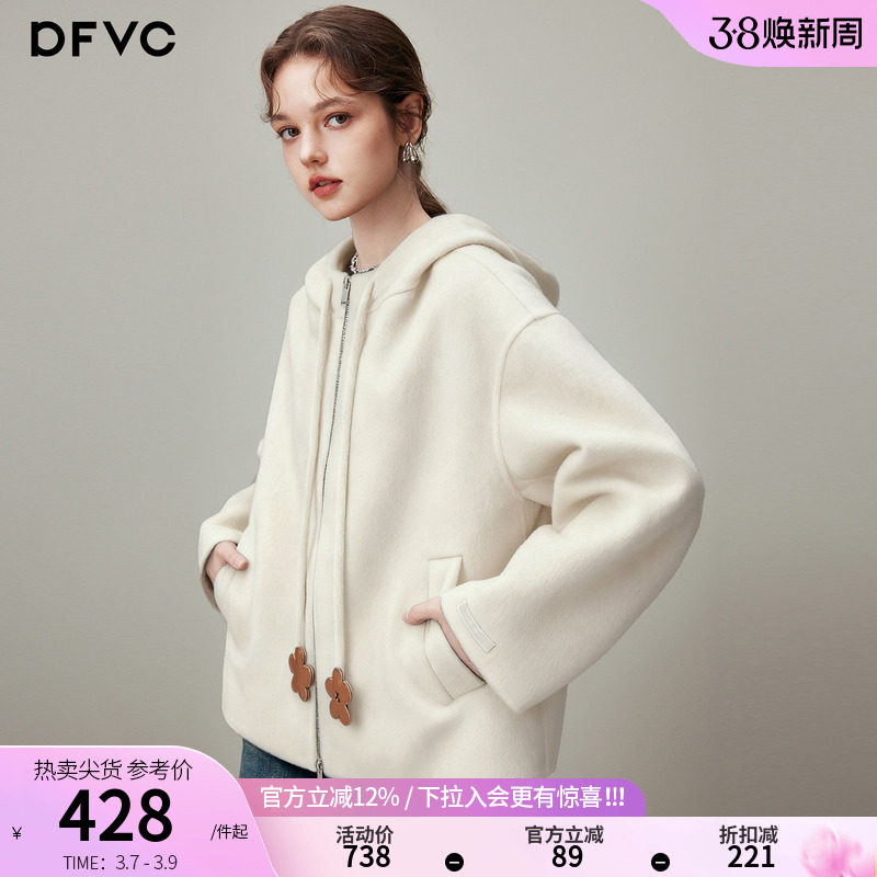 dfvc韩版短款绵羊毛呢外套女2026年春季新款连帽双面呢山羊绒大衣