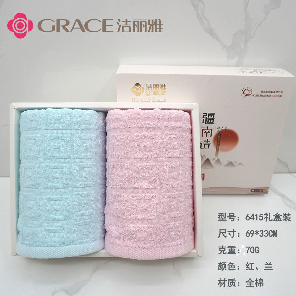 洁丽雅A类毛巾礼盒套装伴手礼2条装礼盒可刺绣logo 6415疆南造