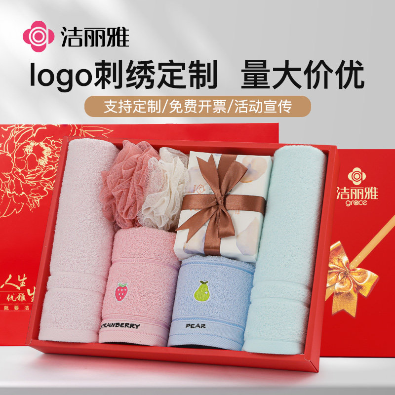 洁丽雅毛巾礼盒套装纯棉家用吸水结婚伴手礼公司员工福利可定ogo