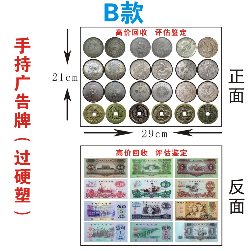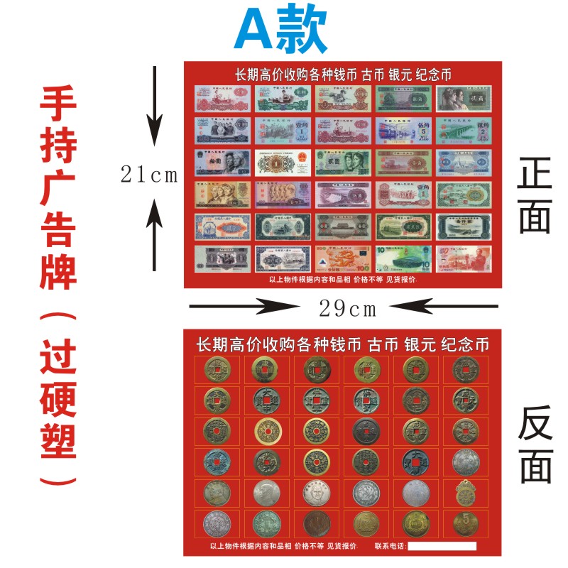 手持广告牌回收古董纸币收货铜钱银元古玩老物件收购A4硬塑牌包邮