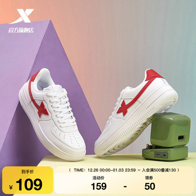 特步空军一号情侣板鞋男鞋冬季潮流休闲鞋运动鞋女鞋子厚底小白鞋