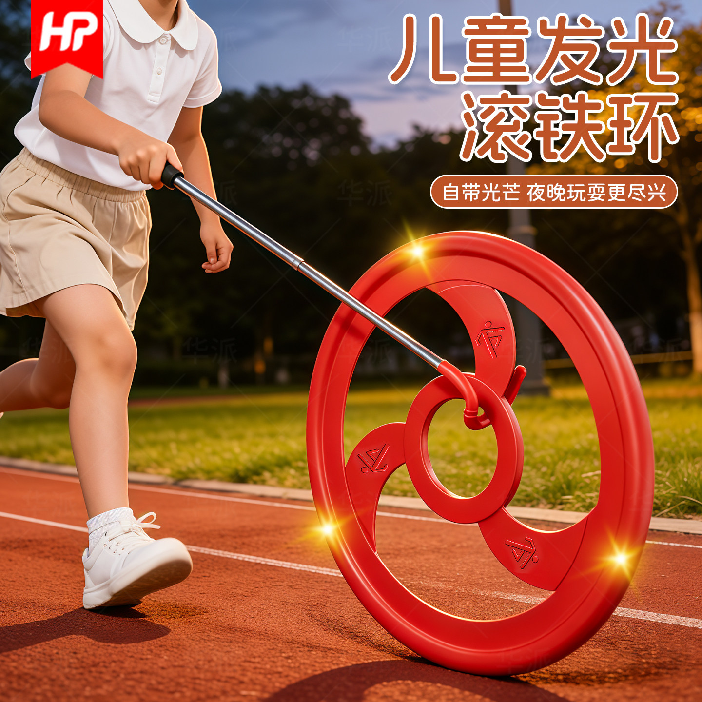 发光滚铁环小学生铁环滚铁圈幼儿园感统风火轮儿童怀旧玩具趣味圈