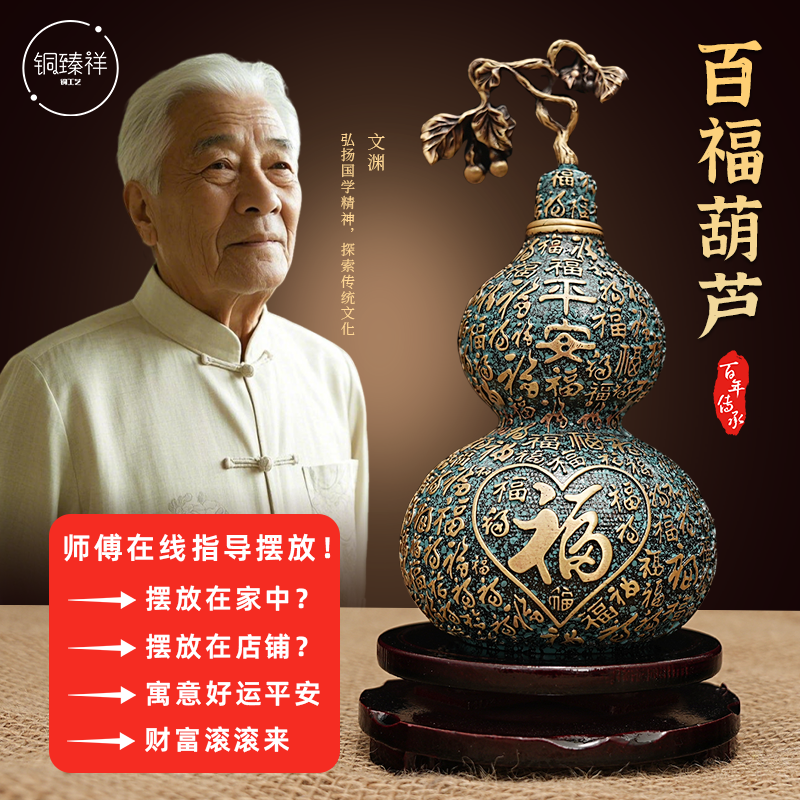铜师傅 《福禄满堂》 铜工艺品家居饰品礼品桌面 葫芦 客厅摆件
