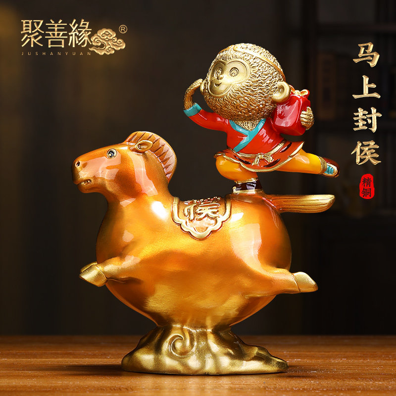 马上封侯摆件客厅酒柜办公桌装饰创意招财铜工艺品送朋友生日礼物