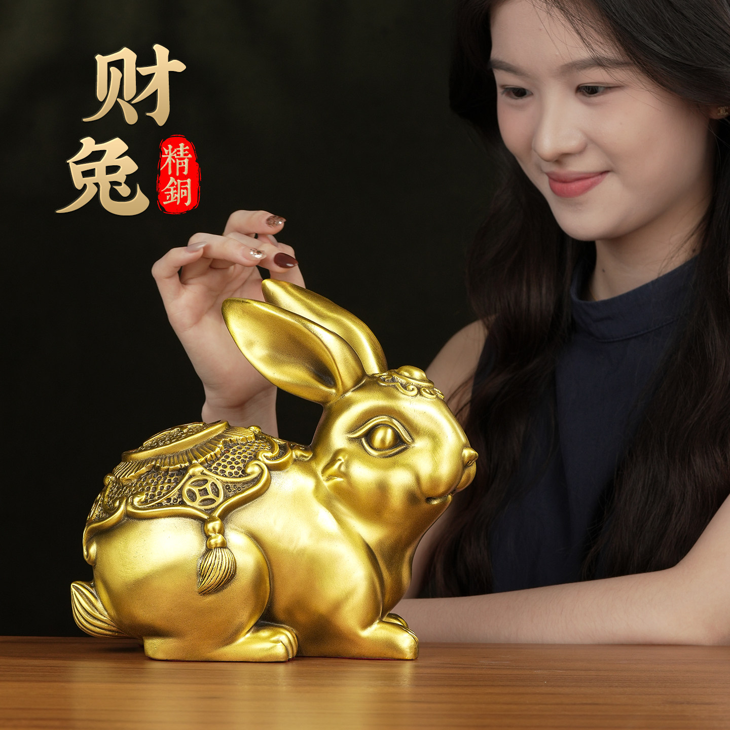 黄铜财兔摆件发财招财兔子全铜工艺品客厅玄关生肖吉祥物乔迁礼物