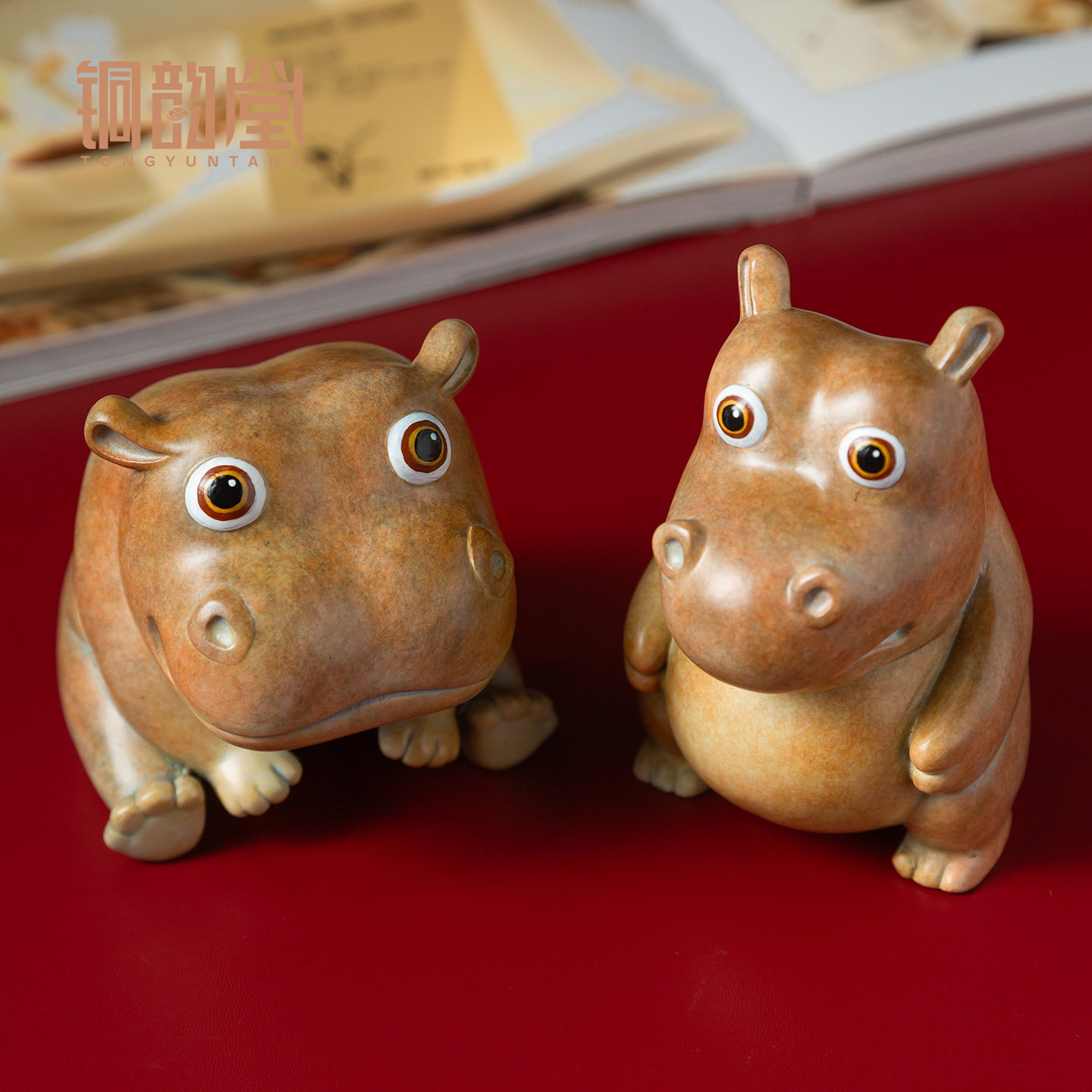 呆河马摆件财大气粗铜工艺品茶宠车载装饰办公室工位解压创意礼品