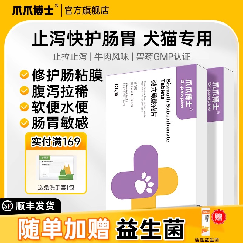 保灵保必亭止泻片宠物猫咪狗腹泻拉稀消炎碱式碳酸铋调理肠胃止泻