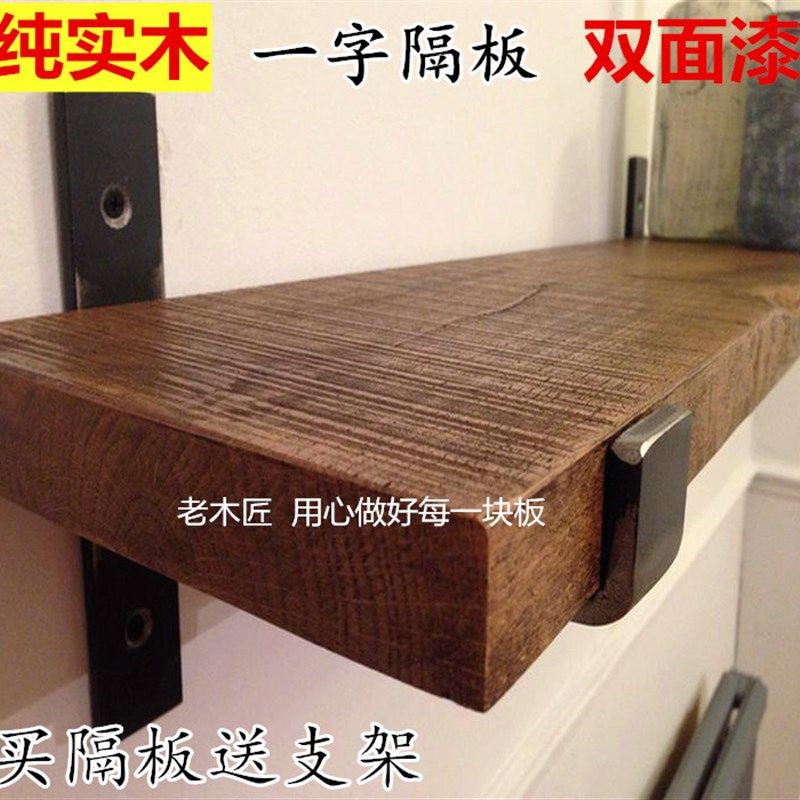 墙上置物架实木隔板墙壁书架复古一字搁板墙架客厅厨房壁挂收纳架