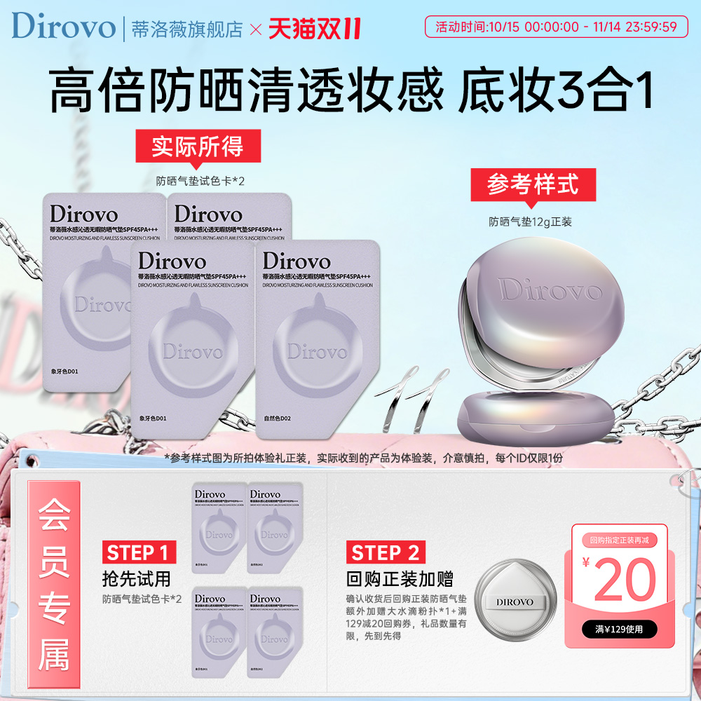 【先试后买】蒂洛薇水晶气垫试色卡三联包持妆细腻遮瑕不脱妆干皮