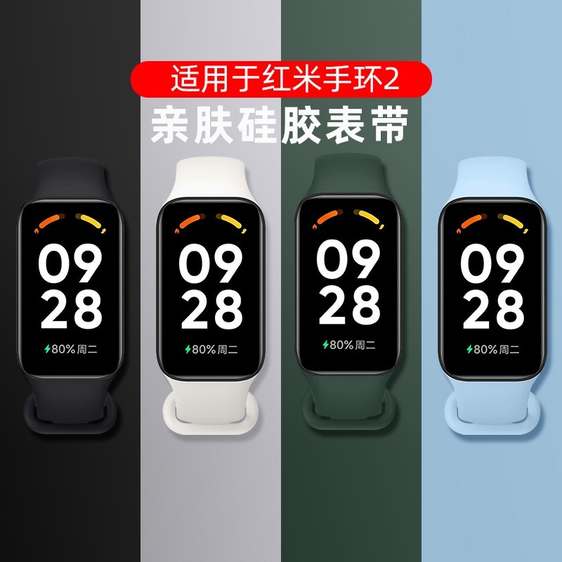 适用小米红米Redmi手环2表带红米手环2代硅胶腕带redmi band2手表链8active一体替换带男女二代运动手环配件