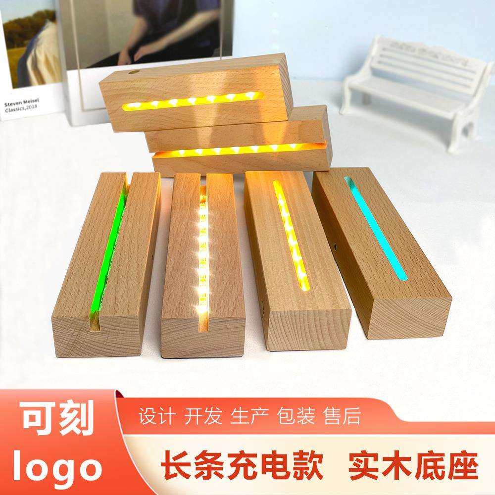 充电款led长条发光底座 木质创意小夜灯触摸开关无线灯座摆件