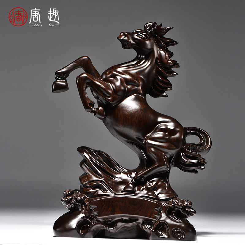 黑檀木雕马摆件 红木马实木工艺品饰品 马到成功家居桌面古风礼品