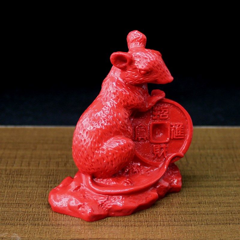 天然朱砂十二生肖老鼠招财进宝鼠客厅玄关桌面摆件复古风礼品摆设